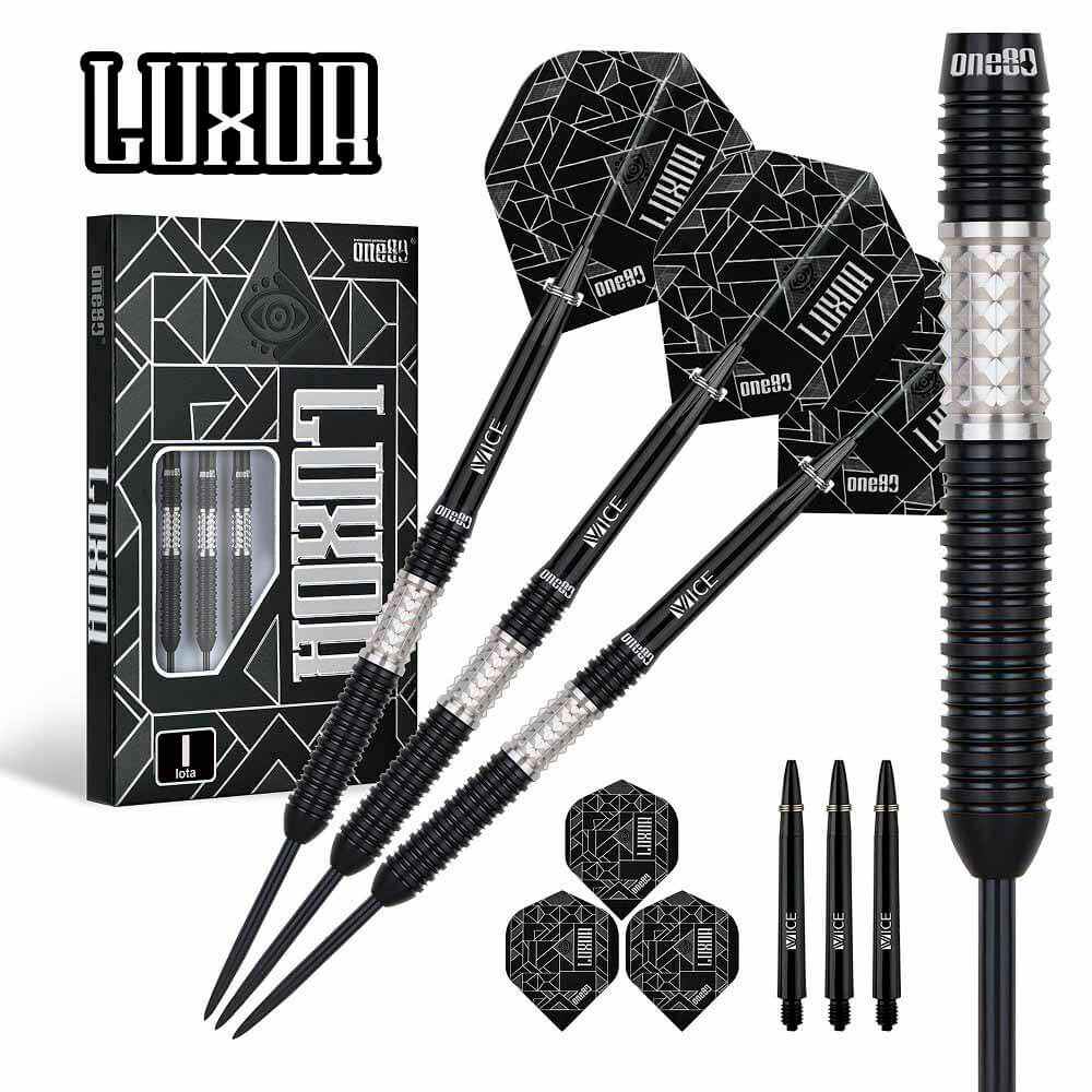 El juego de dardos Luxor Lota II se compone por 1 set de 3 cuerpos, 1 set de 3 cañas , 1 set de 3 plumas y 1 set de 3 puntas 2ba.