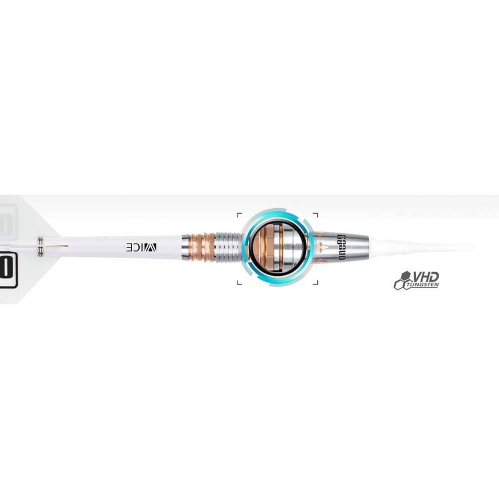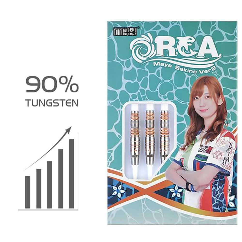 El juego de dardos One80 Maya Sekine Orce II Rosegold compone por 1 set de 3 cuerpos, 1 set de 3 cañas Vice, 1 set de 3 plumas y 3 puntas de plástico rosca 2ba 4mm.