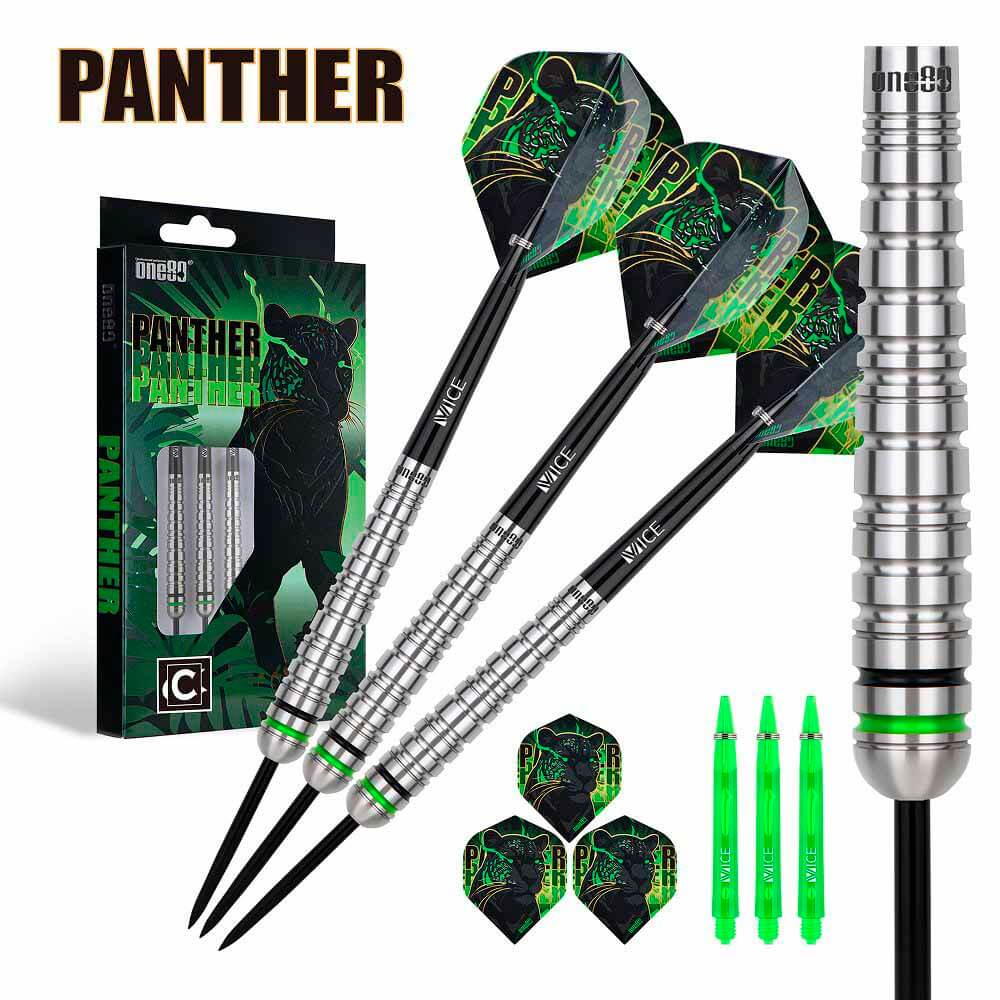 El juego de dardos Panther se compone por 1 set de 3 cuerpos, 1 set de 3 cañas Vice