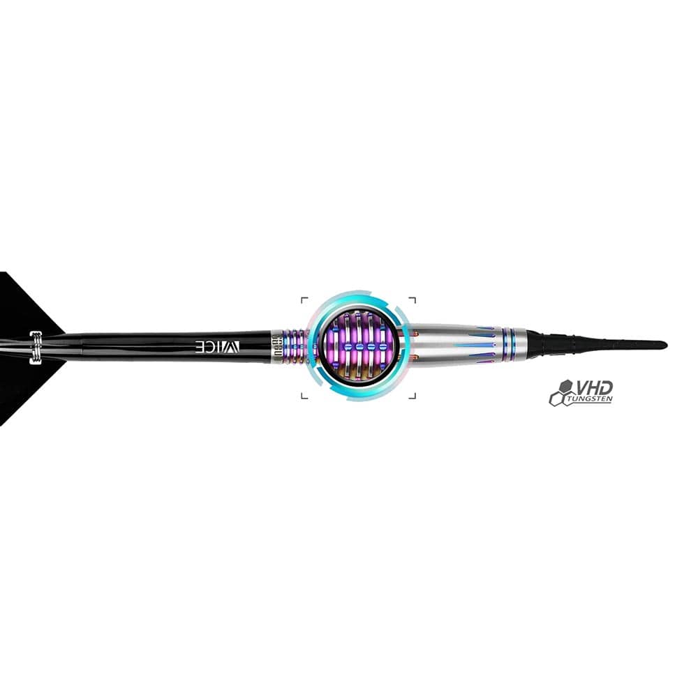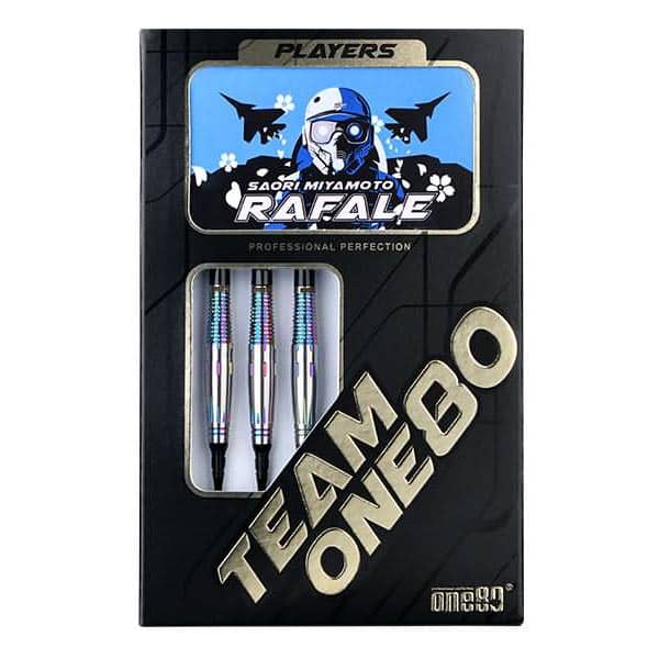 El juego de dardos Rafale Saori Miyamoto se compone por 1 set de 3 cuerpos, 2 sets de 3 cañas Vice, 1 set de 3 plumas One80, 3 puntas de plástico Lippoint premium negro 2ba y 1 protector de puntas