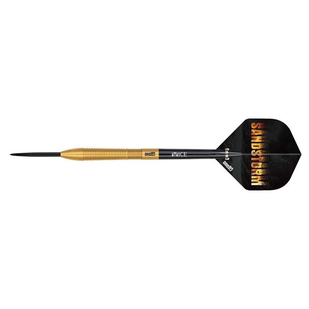 El juego de dardos One80 Sandstorm se compone por 1 set de 3 cuerpos, 1 set de 3 cañas y 1 set de 3 plumas
