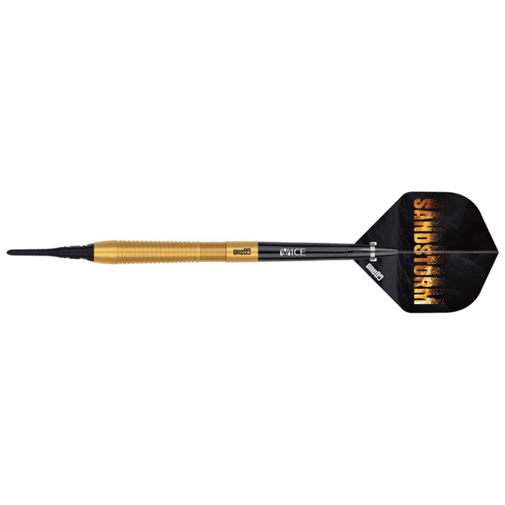 El juego de dardos One80 Sandstorm se compone por 1 set de 3 cuerpos, 1 set de 3 cañas, 1 set de 3 plumas y 1 set de 3 puntas 2ba.
