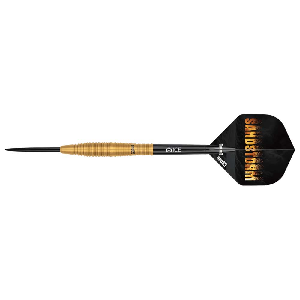 El juego de dardos One80 Sandstorm se compone por 1 set de 3 cuerpos, 1 set de 3 cañas y 1 set de 3 plumas