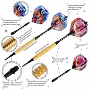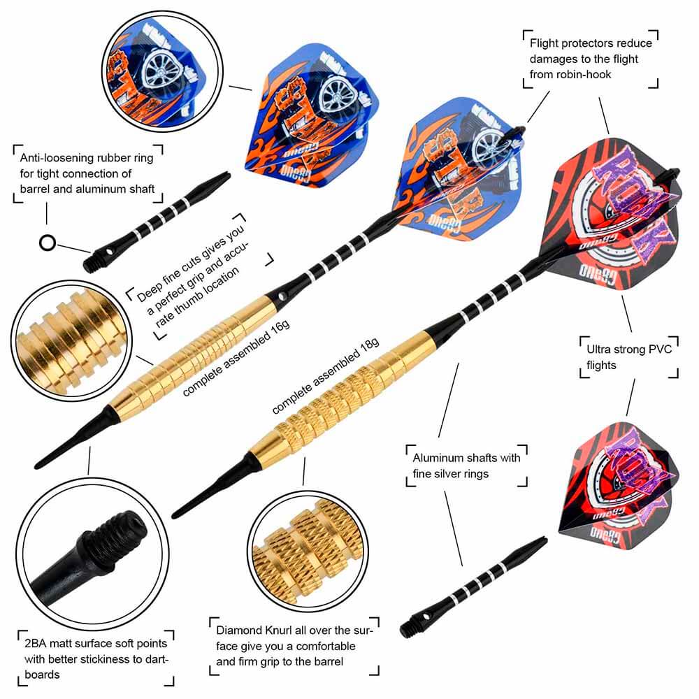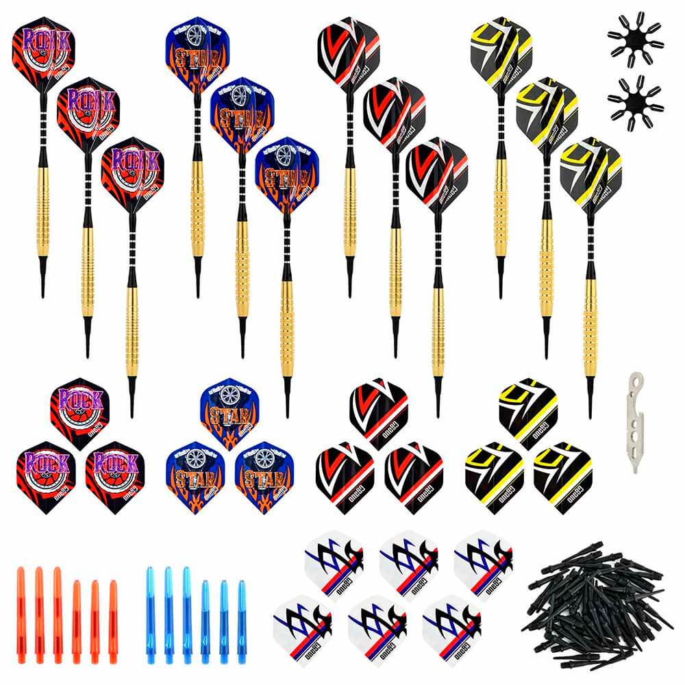 El juego de dardos Steel Pack For Player se compone por 1 set de 3 cuerpos, 1 set de 3 cañas Vice, 1 set de 3 plumas y 1 set de 3 puntas 2ba.
