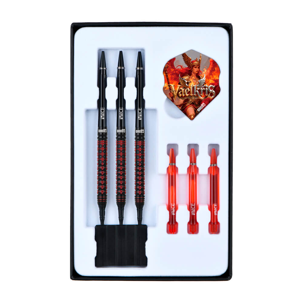 El juego de dardos Vaelkris V06 se compone por 1 set de 3 cuerpos, 1 set de 3 cañas y 1 set de 3 plumas
