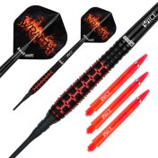El juego de dardos Wraith W1 se compone por 1 set de 3 cuerpos, 1 set de 3 cañas Vice, 1 set de 3 plumas y 1 set de 3 puntas 2ba.