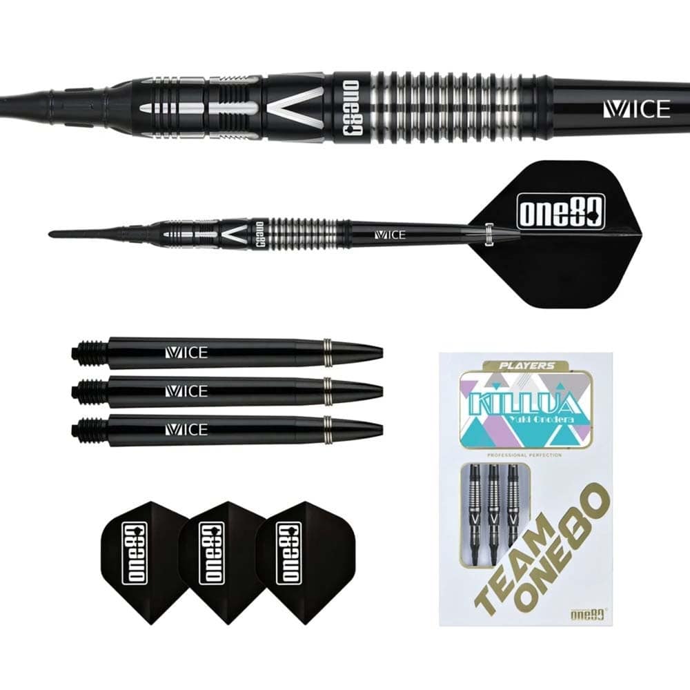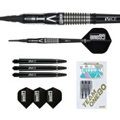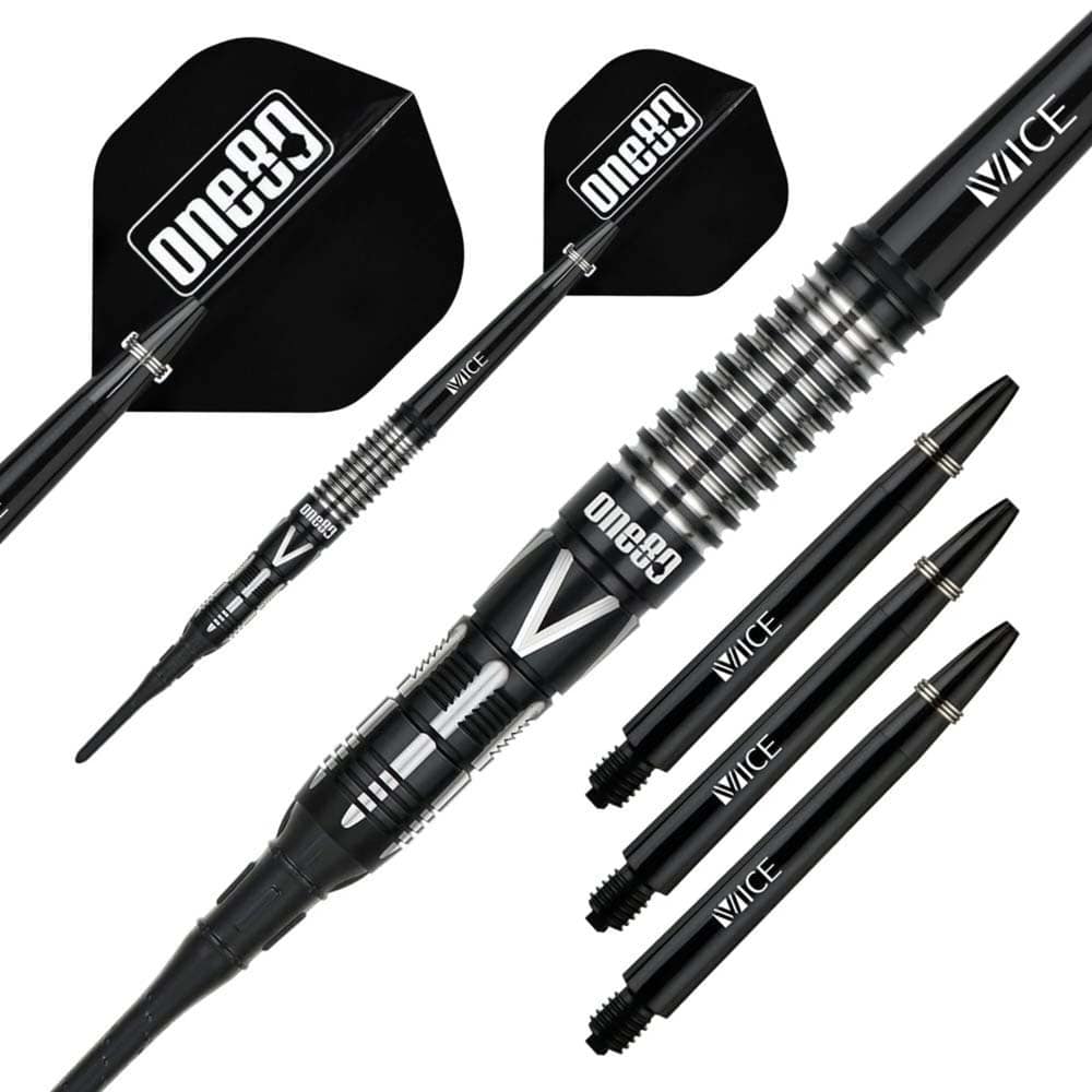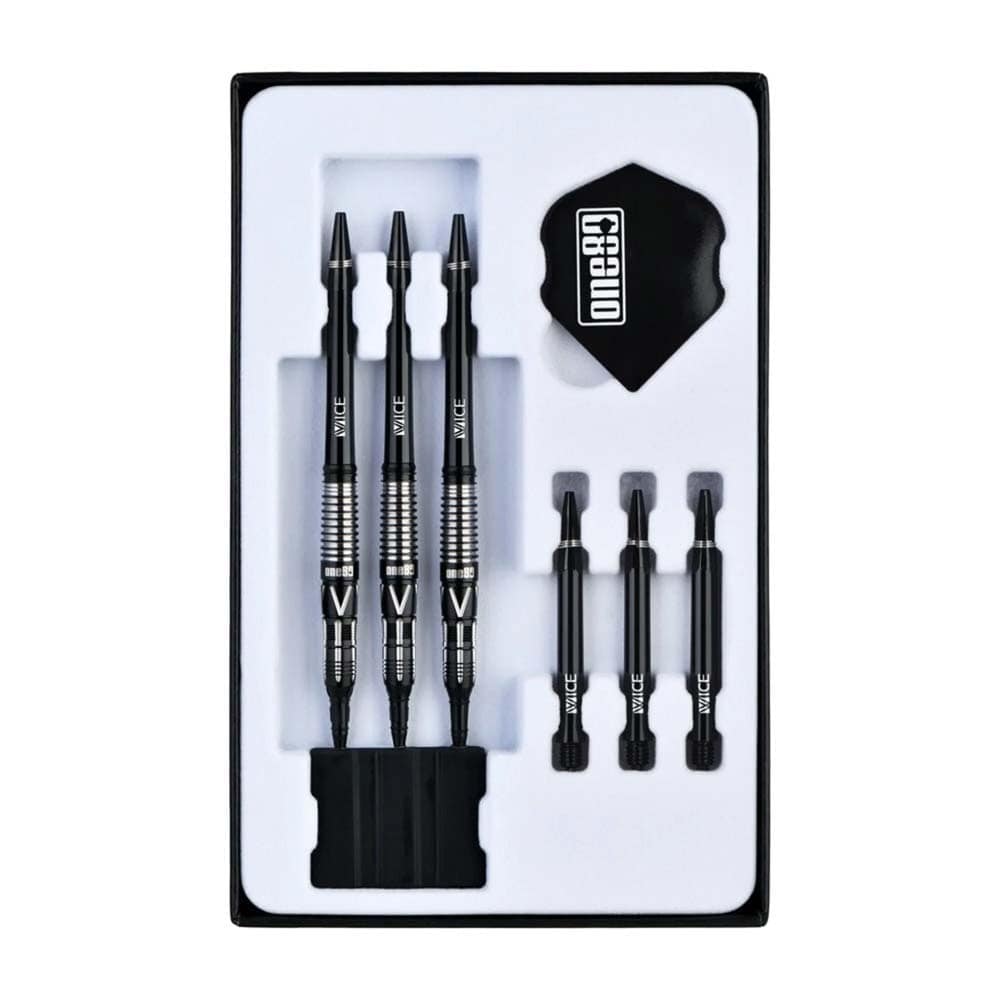 El juego de dardos One80 Yuki Onodera Negro se compone por 1 set de 3 cuerpos, 1 set de 3 cañas, 1 set de 3 plumas y 1 set de 3 puntas 2ba.