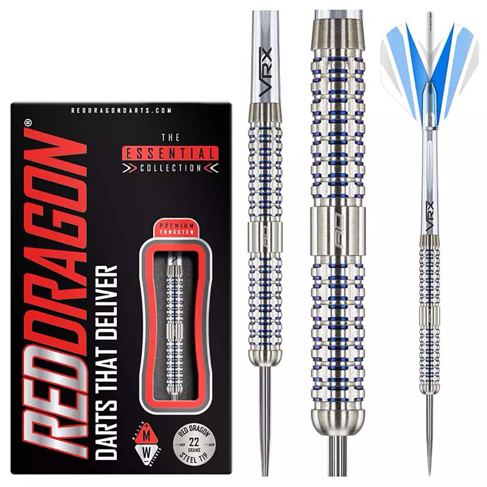 El juego de dardos e compone por 1 set de 3 cuerpos Evoke Red Dragon, 1 set de 3 cañas y 1 set de 3 plumas Red Dragon.