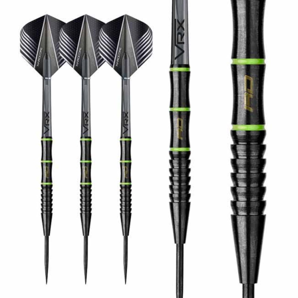 Este juego de dardos su característica a resaltar mas importante es que su barril es muy largo mide 54.6mm , tiene varios zonas de agarre, es totalmente diferente a otro modelos ya que incorpora en la zona del cuerpo de la caña dos uñeros que junto a su agarre shark aportara al lanzamiento un equilibrio de agarre y sujeción perfecto, es un dardo capaz de cautivar al jugador mas exigente.