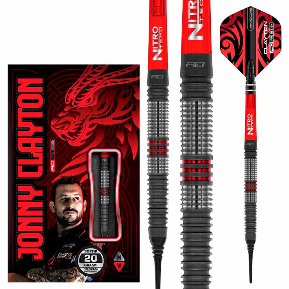 El juego de dardos e compone por 1 set de 3 cuerpos Jonny Clayton Hiraeth, 1 set de 3 cañas , 1 set de 3 plumas Red Dragon y 1 set de 3 punta 2ba
