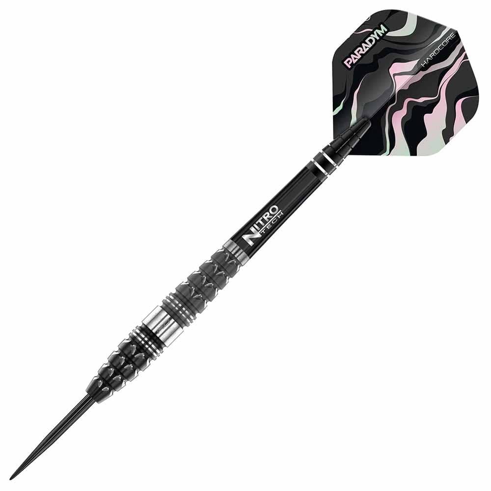 El juego de dardos e compone por 1 set de 3 cuerpos Paradym Torpedo , 1 set de 3 cañas y 1 set de 3 plumas Red Dragon.