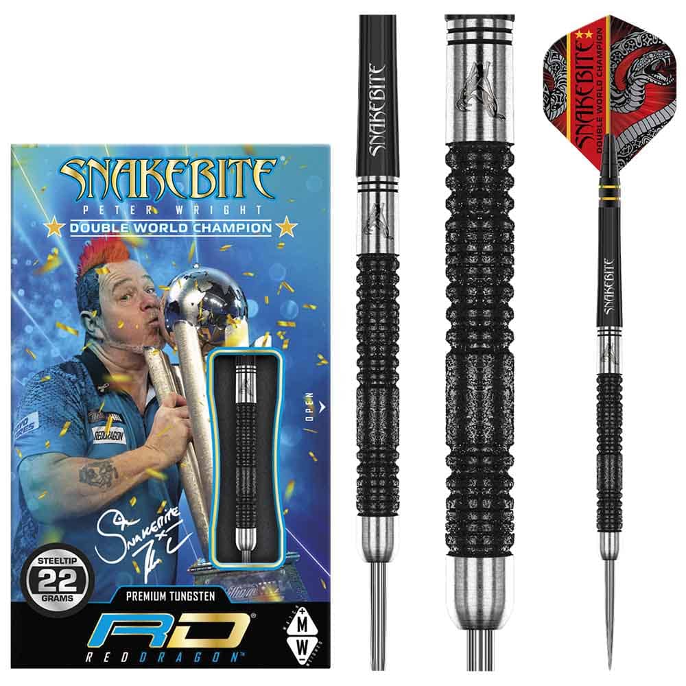 El juego de dardos e compone por 1 set de 3 cuerpos Peter Wright Double WC SE 22g , 1 set de 3 cañas y 1 set de 3 plumas Red Dragon.