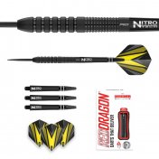 El juego de dardos e compone por 1 set de 3 cuerpos Phantom Red Dragon, 1 set de 3 cañas y 1 set de 3 plumas Red Dragon.