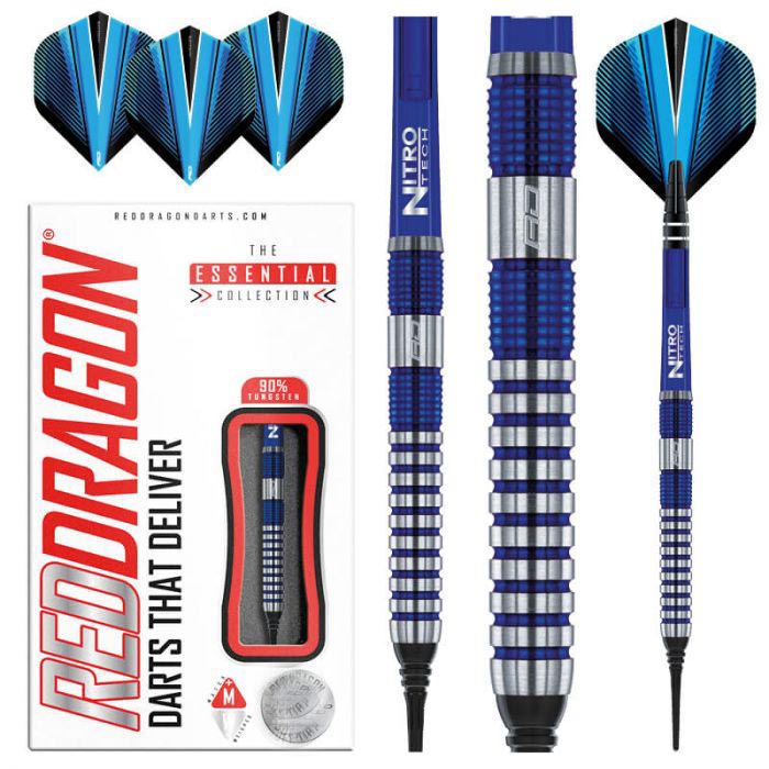 El juego de dardos e compone por 1 set de 3 cuerpos Red Dragon Range 1 Polaris, 1 set de 3 cañas Red Dragon, 1 set de 3 plumas Red Dragon y 1 set de 3 puntas.