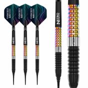 El juego de dardos e compone por 1 set de 3 cuerpos Peter Wright Corra, 1 set de 3 cañas , 1 set de 3 plumas Red Dragon y 1 set de 3 punta 2ba
