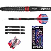 El juego de dardos e compone por 1 set de 3 cuerpos Vengeance 90% , 1 set de 3 cañas y 1 set de 3 plumas Red Dragon.
