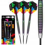 El juego de dardos se compone por 1 set de 3 cuerpos de dardos Ryan Joyce Relentless con puntas de acero, 1 set de 3 cañas Mission negro short 34mm y 1 set de 3 plumas Mission Relentless Standard