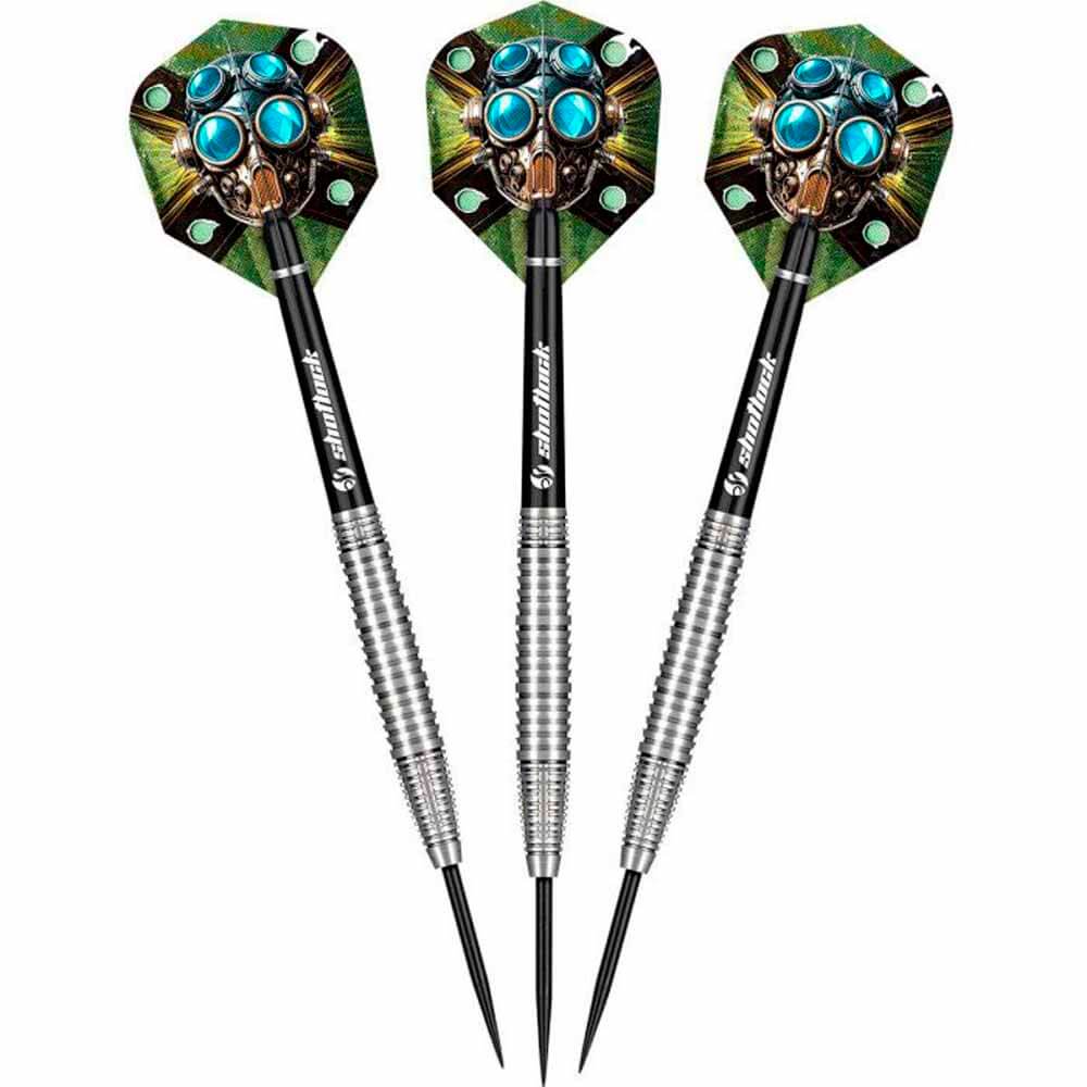 El dardos se compone por 1 ser de 3 cuerpos Badlands Krushe con punta de acero, 1 ser de 3 cañas Shot y 1 set de 3 plumas Shot.