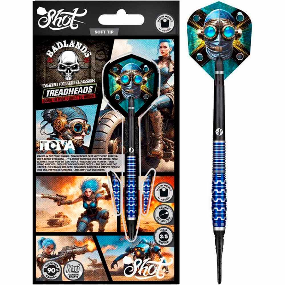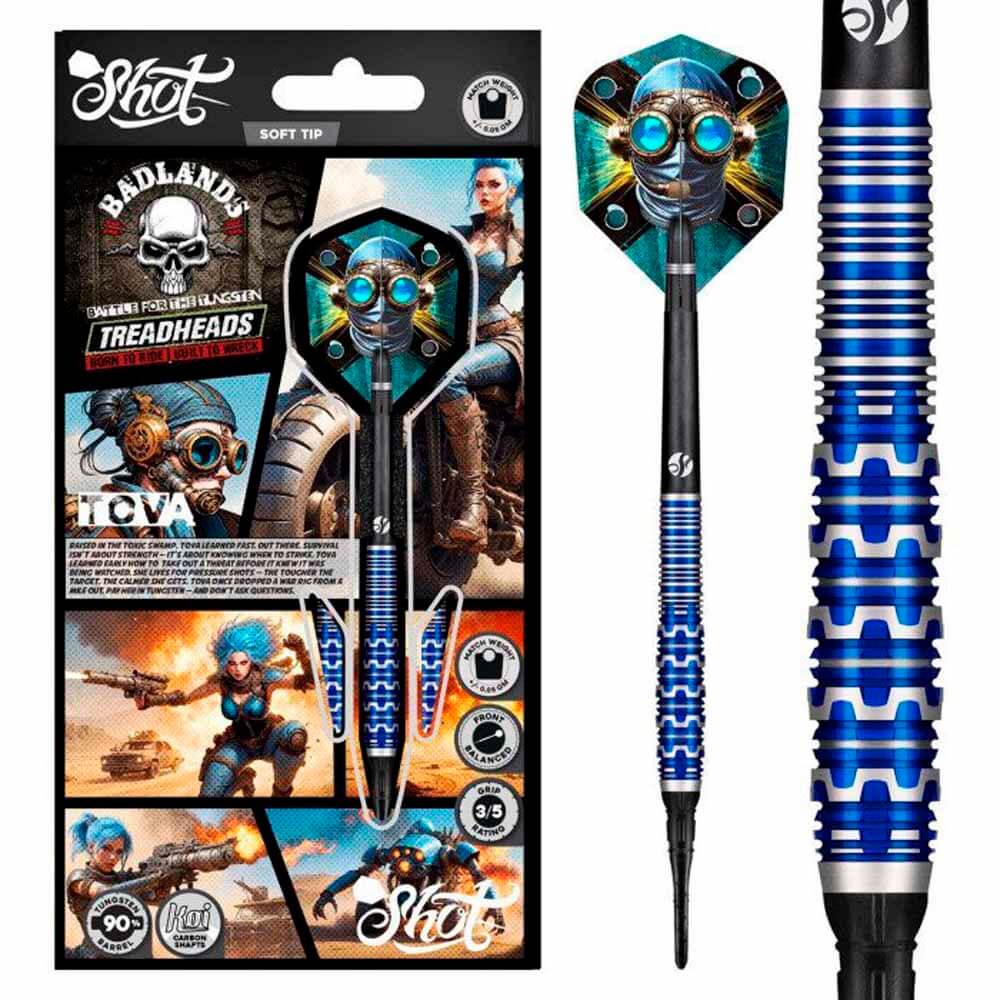 El dardos se compone por 1 ser de 3 cuerpos Shot Badlands Tova 20gr 90%, 1 ser de 3 cañas, 1 set de 3 plumas y 1 set de 3 puntas 2ba