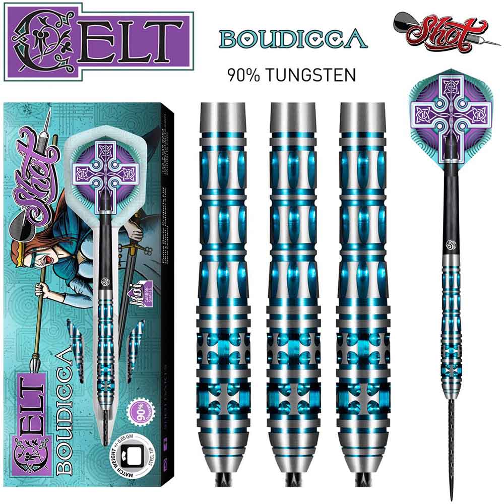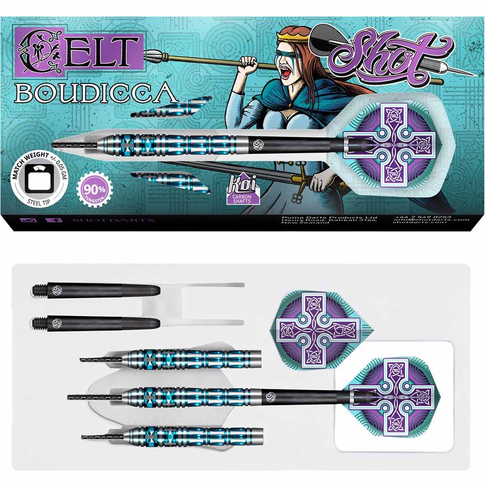 El dardos se compone por 1 ser de 3 cuerpos Celt Boudicca 90%, 1 ser de 3 cañas y 1 set de 3 plumas