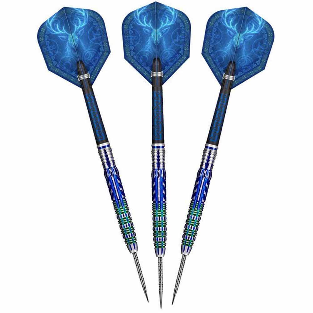 El dardos se compone por 1 ser de 3 cuerpos Celt Merlin con punta de acero, 1 ser de 3 cañas Shot y 1 set de 3 plumas Shot.