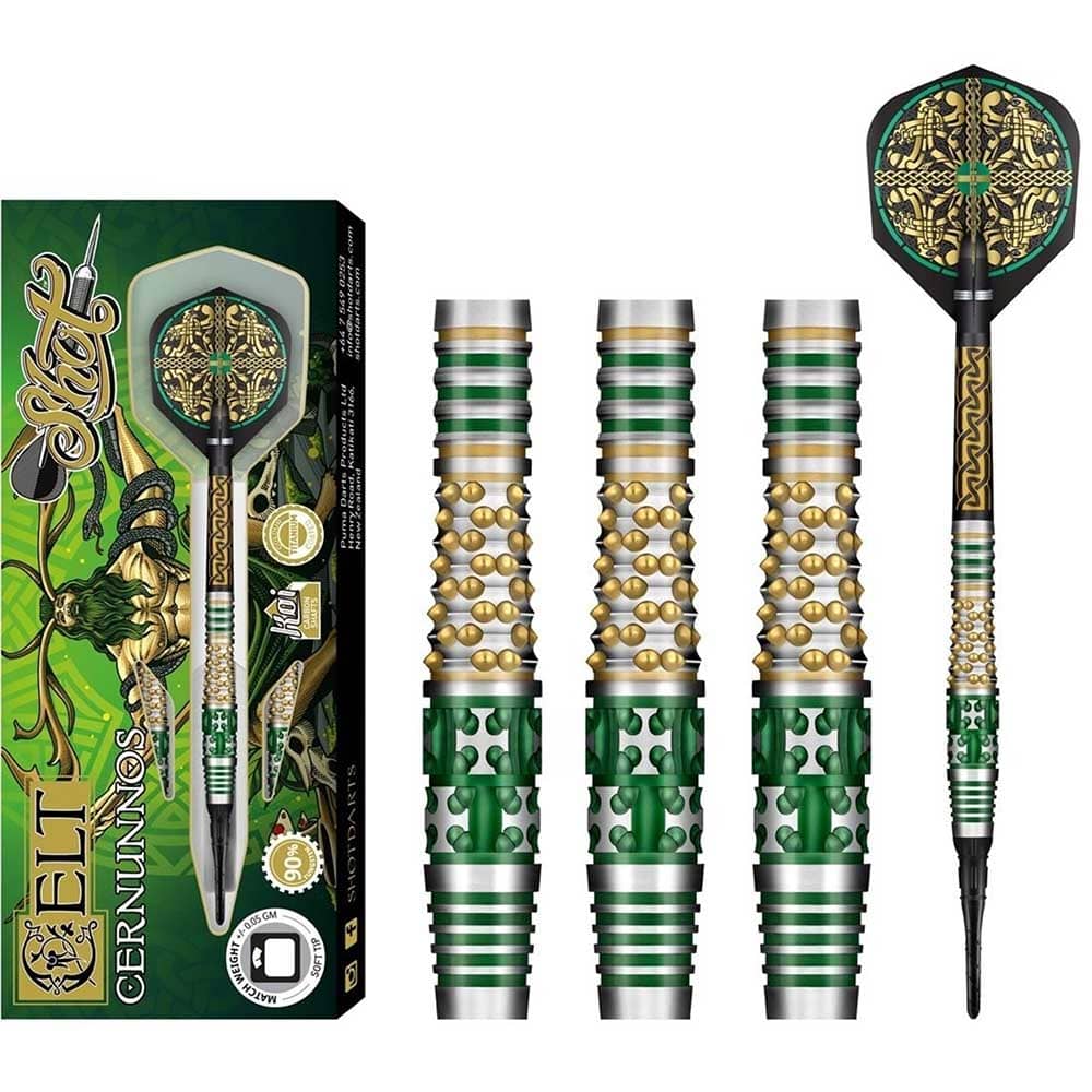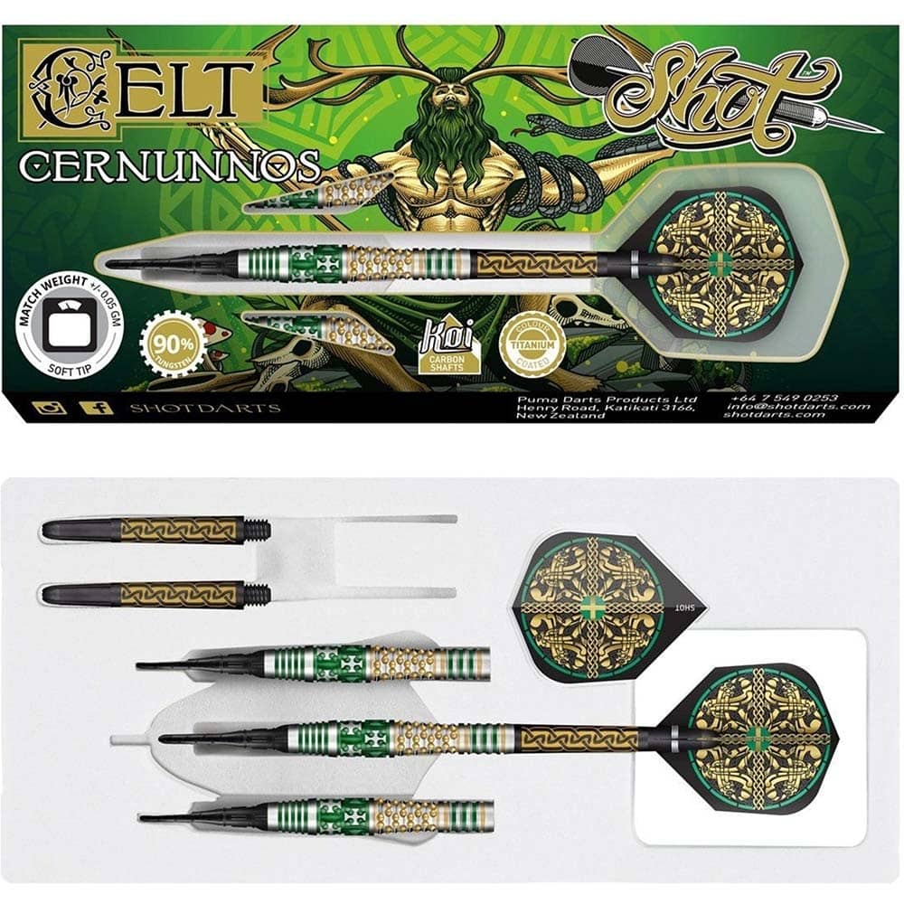 El dardos se compone por 1 ser de 3 cuerpos Shot Celt Cernunnos, 1 ser de 3 cañas, 1 set de 3 plumas y 1 set de 3 puntas 2ba.