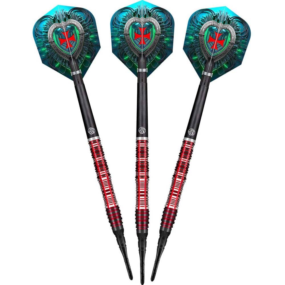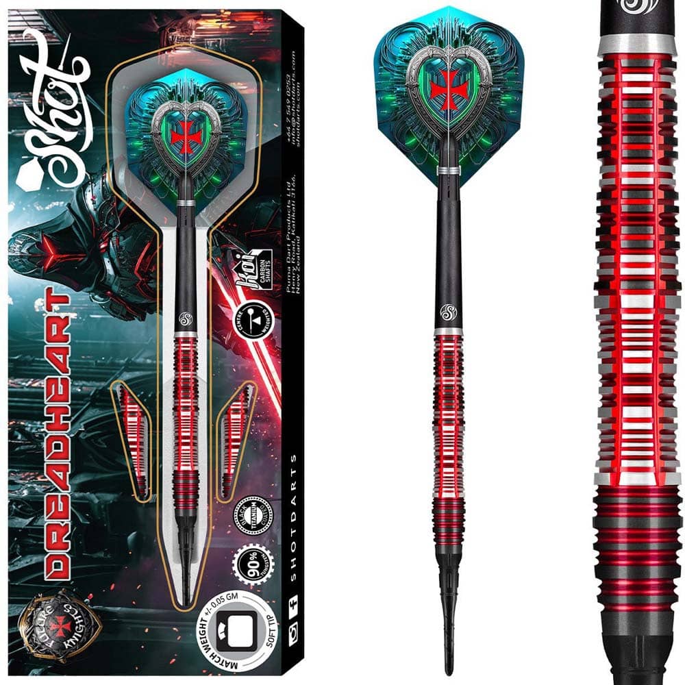 El juego de dardos Shot Future Knights Dreadheart se compone por 1 set de 3 cuerpos, 1 set de 3 cañas , 1 set de 3 plumas y 3 puntas de plástico rosca 2ba 4mm.