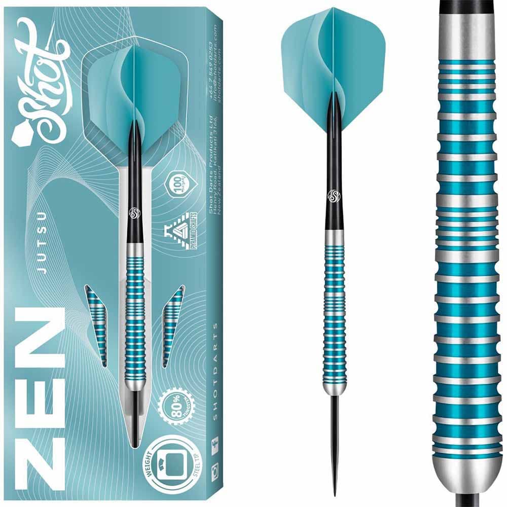 El dardos se compone por 1 ser de 3 cuerpos Zen Jutsu 23gr, 1 set de 3 cañas y 1 set de 3 plumas.