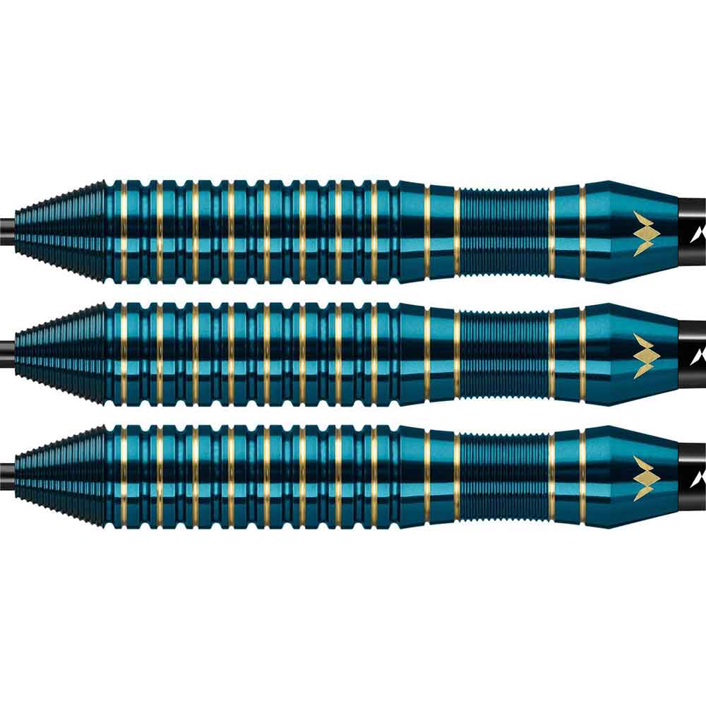 El juego de dardos se compone por 1 set de 3 cuerpos de dardos Mission con puntas de acero, 1 set de 3 cañas Mission y 1 set de 3 plumas Mission.
