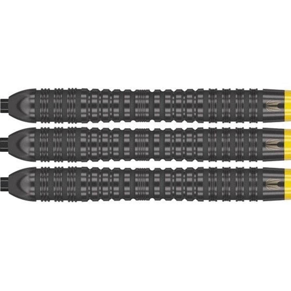 El juego se compone por 1 set de 3 cuerpos de dardos Target Bolide Void con punta Swiss de 26mm, 1 set de 3 cañas Pro Grip corta y 1 set de 3 plumas.