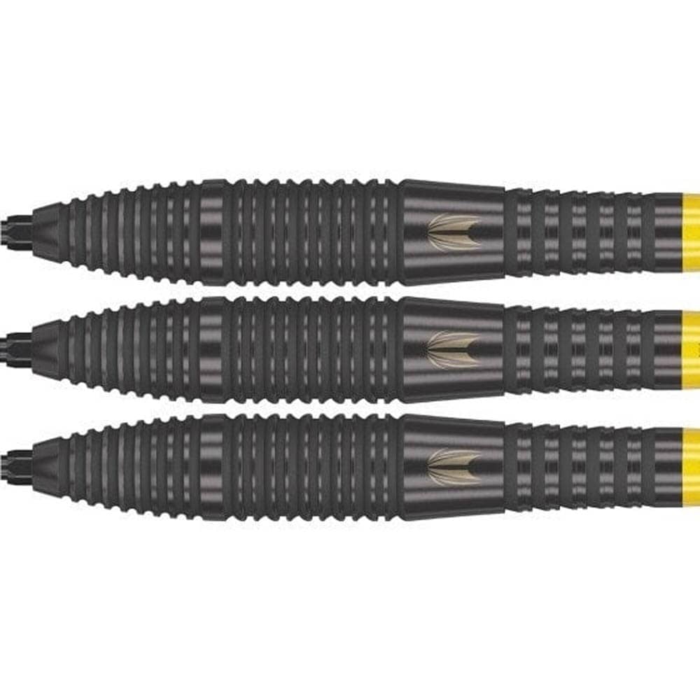 El juego se compone por 1 set de 3 cuerpos de dardos Target Bolide Void con punta Swiss , 1 set de 3 cañas Pro Grip corta y 1 set de 3 plumas.