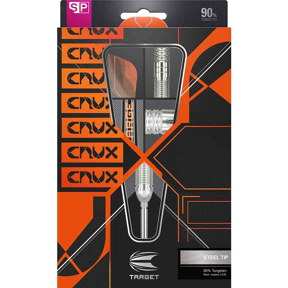 El pack se compone por 3 cuerpos dardos Crux 03, set de 3 plumas Target, set de 3 cañas Pro Grip y 1 set de 3 puntas Swiss Point