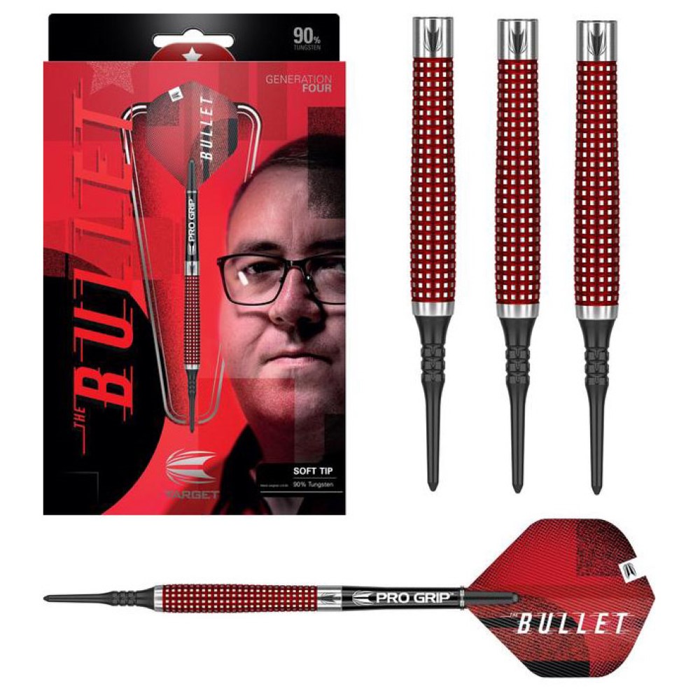El juego de dardos se compone por 1 set de 3 cuerpos Stephen Bunting G4, 1 set de 3 cañas Target, 1 set de plumas Stephen Bunting G4 Pro Ultra NO2 y 3 puntas 2ba 4mm