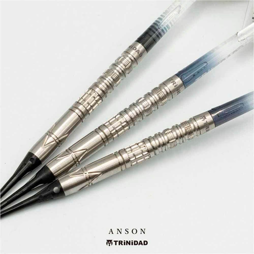 El juego de dardos se compone por 1 set de 3 cuerpos Anson Lu Ansheng , 1 set de 3 plumas Trinidad, 1 set de 3 cañas Trinidad y 3 puntas de plástico 2ba.
