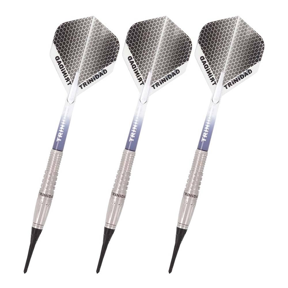 El juego de dardos se compone por 1 set de 3 cuerpos Carlos Type3, 1 set de 3 plumas Trinidad 1 set de 3 cañas Trinidad y 3 puntas de plástico 2ba.