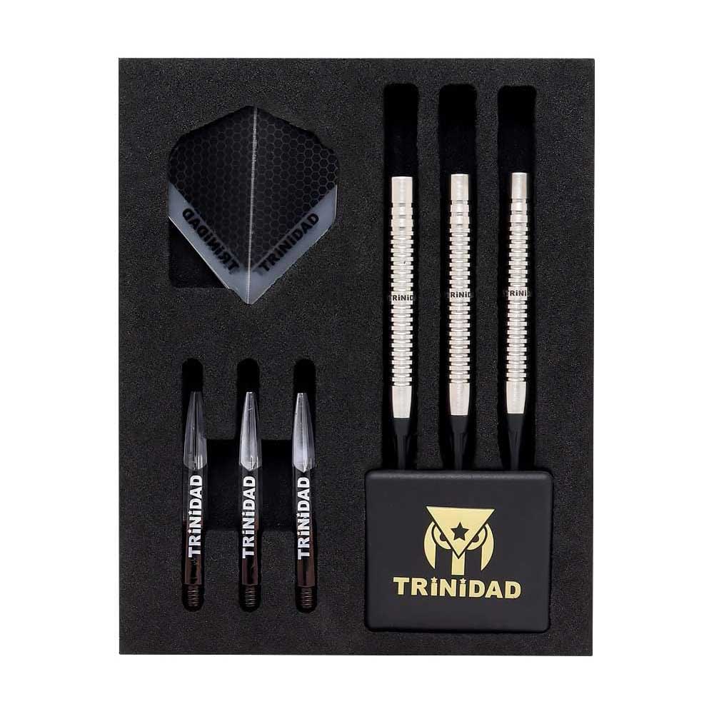 El juego de dardos se compone por 1 set de 3 cuerpos Kid Tomoya Gotocon punta de plastico , 1 set de 3 plumas Trinidad ,1 set de 3 cañas Trinidad y set de 3 puntas 2ba 4mm
