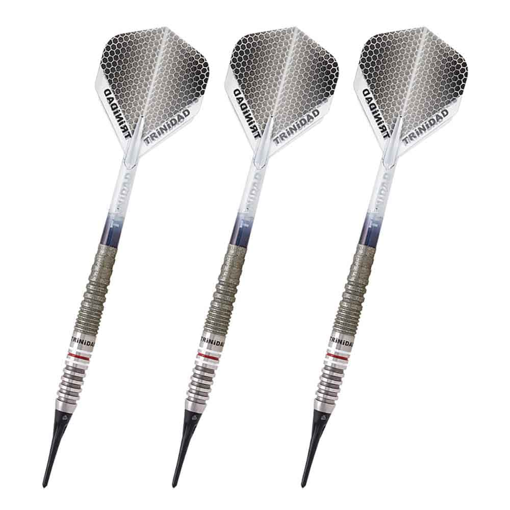 El juego de dardos se compone por 1 set de 3 cuerpos Gomez Type 13 Trinidad, 1 set de 3 plumas Condor y 1 set de puntas Condor.