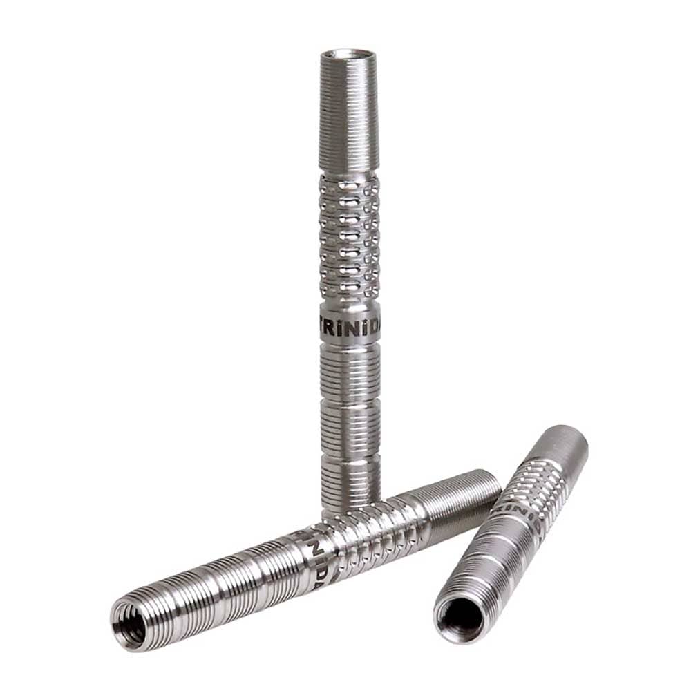 El juego de dardos se compone por 1 set de 3 cuerpos Locche Yusuke Kuniki, 1 set de 3 plumas Trinidad, 1 set de 3 cañas Trinidad y 1 set de 3 puntas de plástico rosca 2ba 4mm.