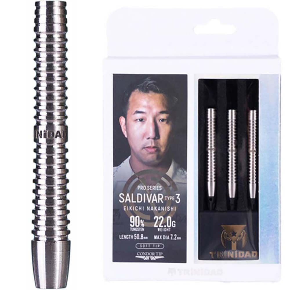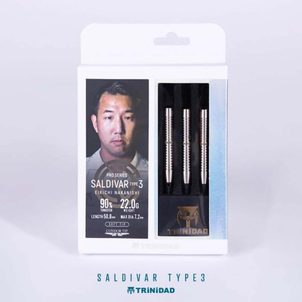 El dardo se compone por 1 set de dardos de la marca Trinidad Saldivar Diseñados por el jugador Eikichi Nakanishi,que incluye 1 set de 3 barriles, 1 set de 3 plumas y 1 set de 3 plumas