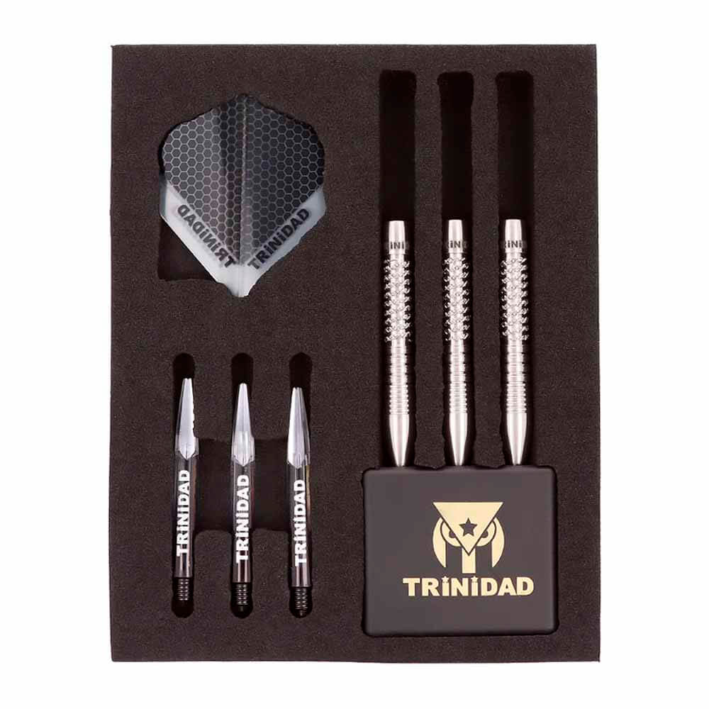 El juego de dardos se compone por 1 set de 3 cuerpos Saldivar Tipo 4 Nakanishi Nagakichi y 1 set de 3 plumas Trinidad, 1 set de 3 cañas Trinidad.