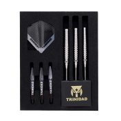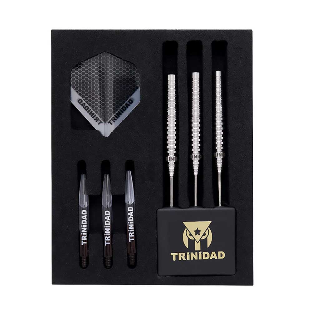 El juego de dardos se compone por 1 set de 3 cuerpos Vasquez Hiroyasu Ito , 1 set de 3 plumas Trinidad y 1 set de 3 cañas Trinidad.