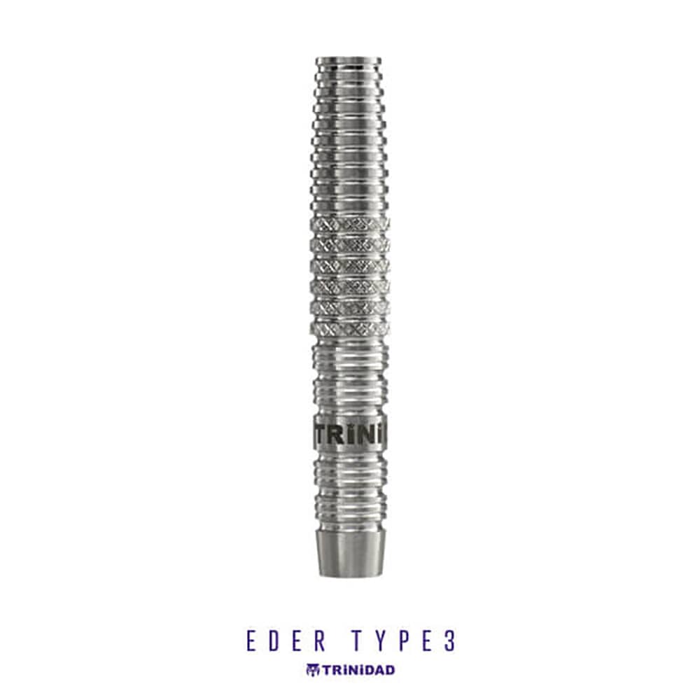 El juego de dardos Trinidad Eder Type 3 se compone por 1 set de 3 cuerpos Eder , 1 set de 3 plumas Condor, 1 set de 3 puntas 2ba 4mm y 1 set de 3 puntas 2ba 4mm