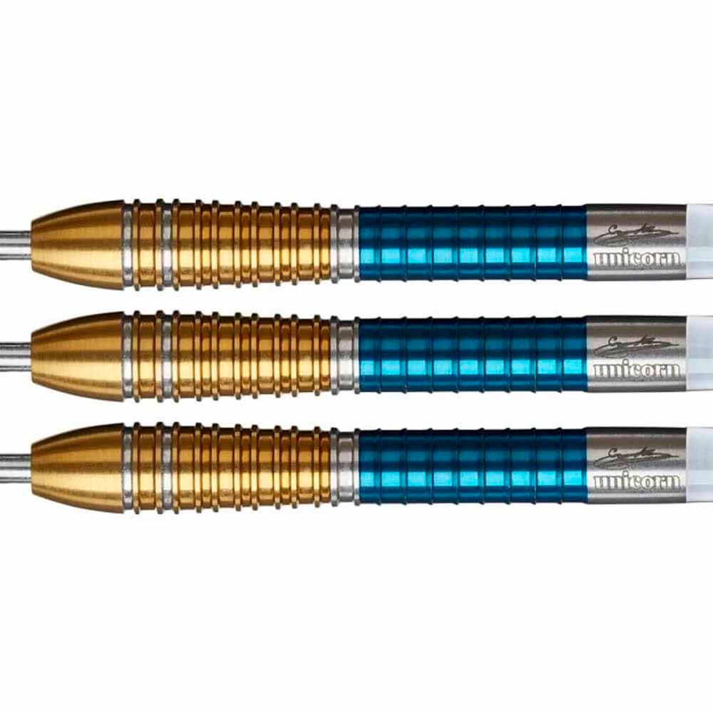 El juego de dardos se compone por: 1 set de 3 cuerpos Unicorn Gary Anderson Phase 6 Duo 90%, 1 set de 3 cañas Unicorn Darts, 1 set de 3 plumas.