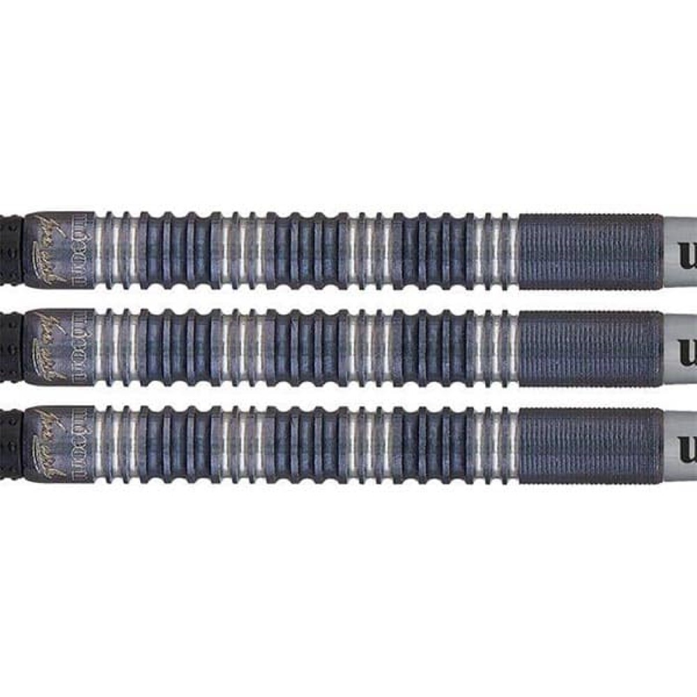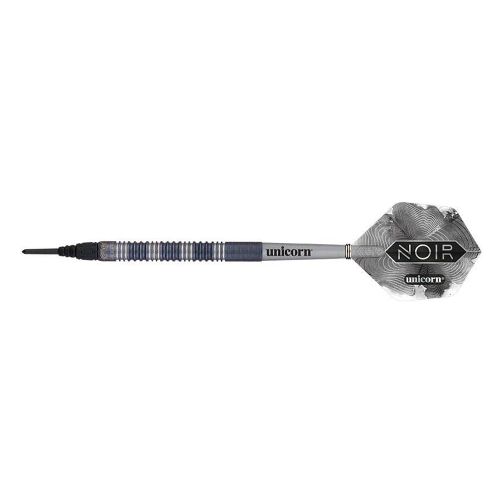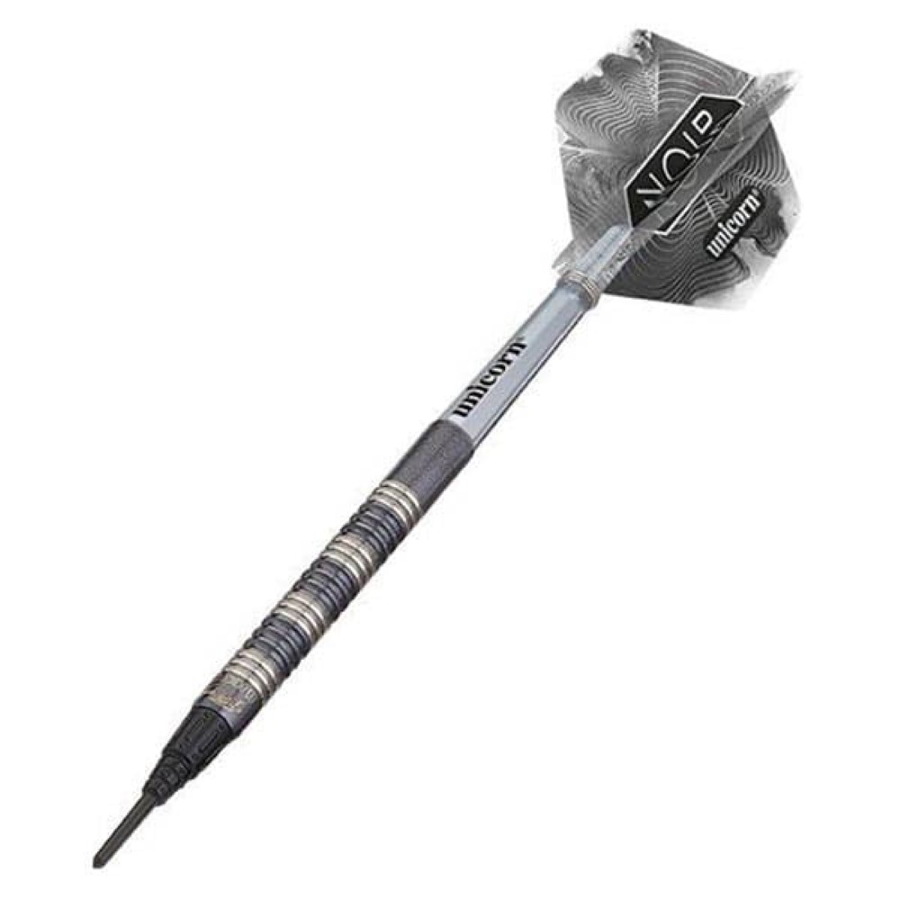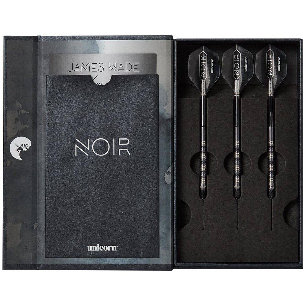 El juego de dardos Unicorn Noir James Wade se compone por 1 set de 3 cuerpos, 1 set de 3 cañas Unicorn medium, 1 set de 3 plumas Noir Unicorn y 3 puntas de plástico Unicorn Epic 2ba