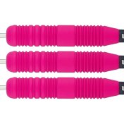 El producto se compone por 1 set de 3 cuerpos de dardos Rubberised Pink de Unicorn Darts , 1 set de 3 plumas y 1 set de 3 cañas .