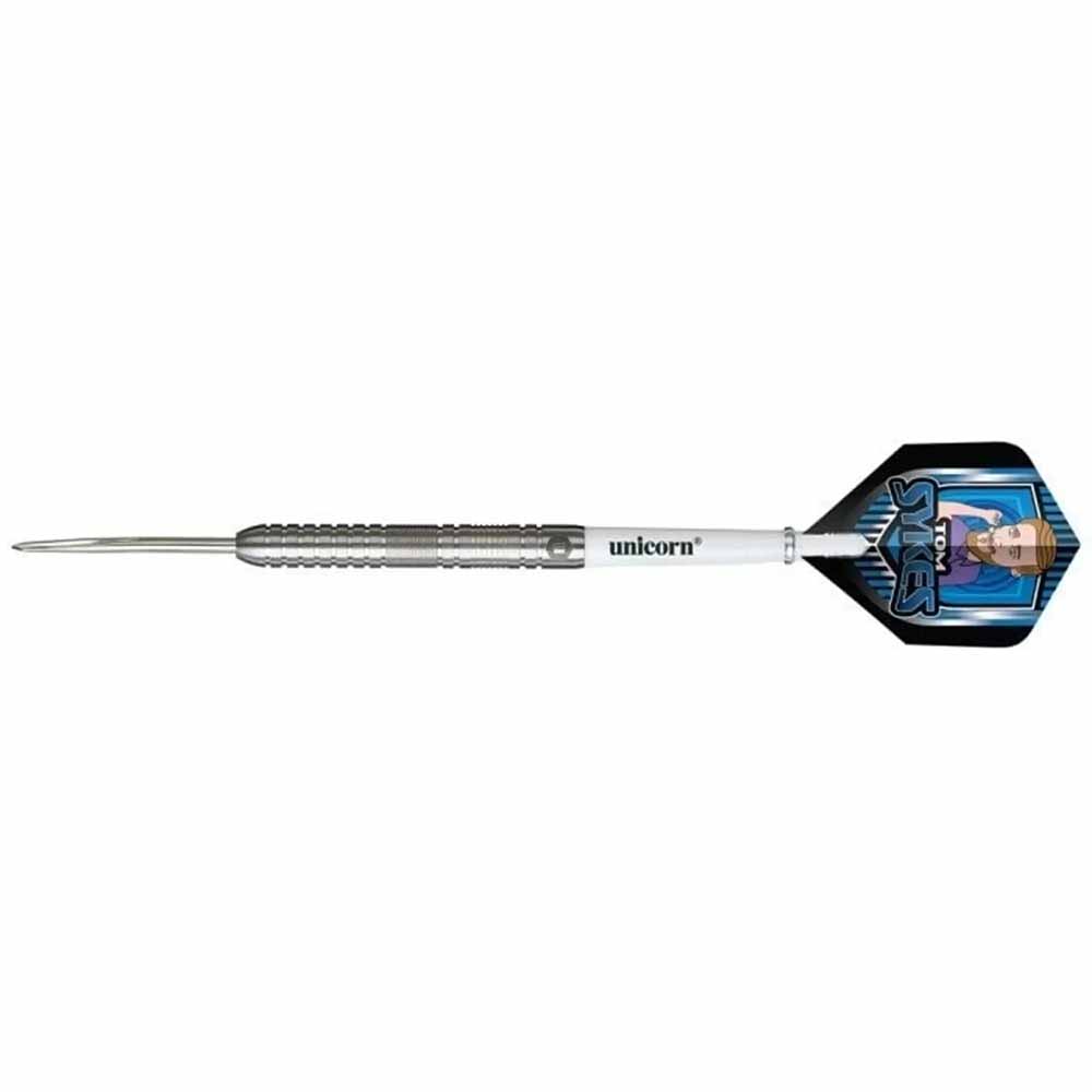 El juego de dardos se compone por: 1 set de 3 cuerpos Unicorn Tom Sykes 90%, 1 set de 3 cañas Unicorn Darts, 1 set de 3 plumas modelo Tom Sykes.