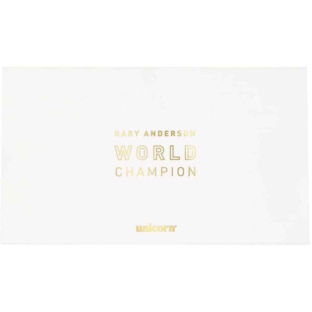 El juego de dardos Unicorn W.C. Gary Anderson Phase 5 se compone por 1 set de 3 cuerpos con punta de metal, 3 sets de 3 cañas Unicorn medium y 4 sets de 3 plumas Unicorn