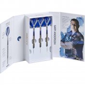 El juego de dardos Unicorn W.C. Gary Anderson Phase 5 se compone por 1 set de 3 cuerpos con punta de metal, 3 sets de 3 cañas Unicorn medium y 4 sets de 3 plumas Unicorn