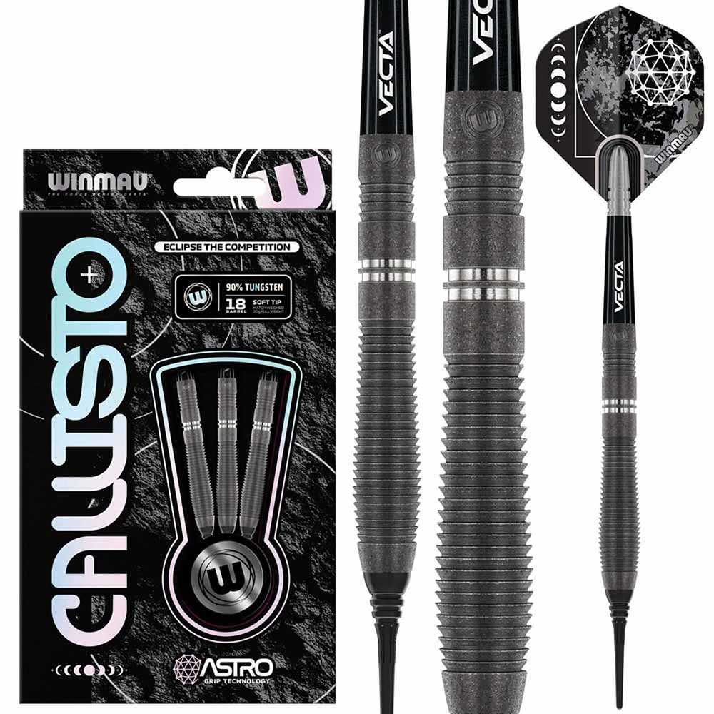 El producto se compone de por 1 set de 3 cuerpos Callisto 02 de la marca Winmau Darts, 1 set de 3 cañas Vecta corta, 1 set de plumas Prism Delta, 3 puntas Triton Winmau de plástico rosca 2ba y 1 protector de puntas.