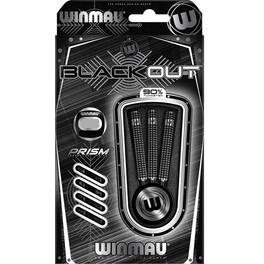 El pack se compone por 3 cuerpos de dardo Black Out , 1 set de 3 cañas Prism Winmau y 1 set de 3 plumas Rhino Extra